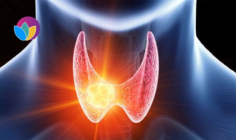 Thyroid malignancy occurs in the cells of the thyroid located at the base of the neck.